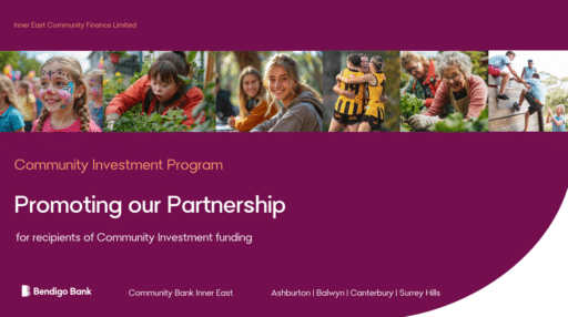 When we approve sponsorship and grant applications, we look to work together to build a strong partnership with your organisation, to promote the Community Bank and encourage your members and supporters to bank with the Community Bank. It is imperative your members and supporters understand it is our Community Bank who provides the sponsorship, not ‘Bendigo Bank’. Banking must be placed with our branch network to generate the funds we have available for our Community Investment Program.
